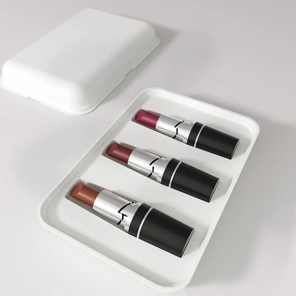 Embrace sustainable luxury with Biodele’s Pulp Molded Cosmetic Packaging. Our eco-friendly, custom-molded lipstick inserts and skincare set trays protect and organize your beauty essentials while reducing waste.